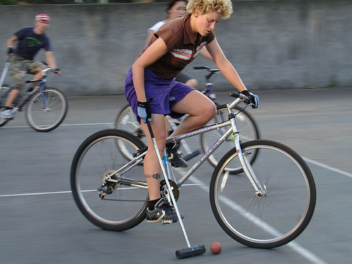 All the thrills and spills of Bicycle Polo minus the handle bars, brakes, chain and off course a wheel.