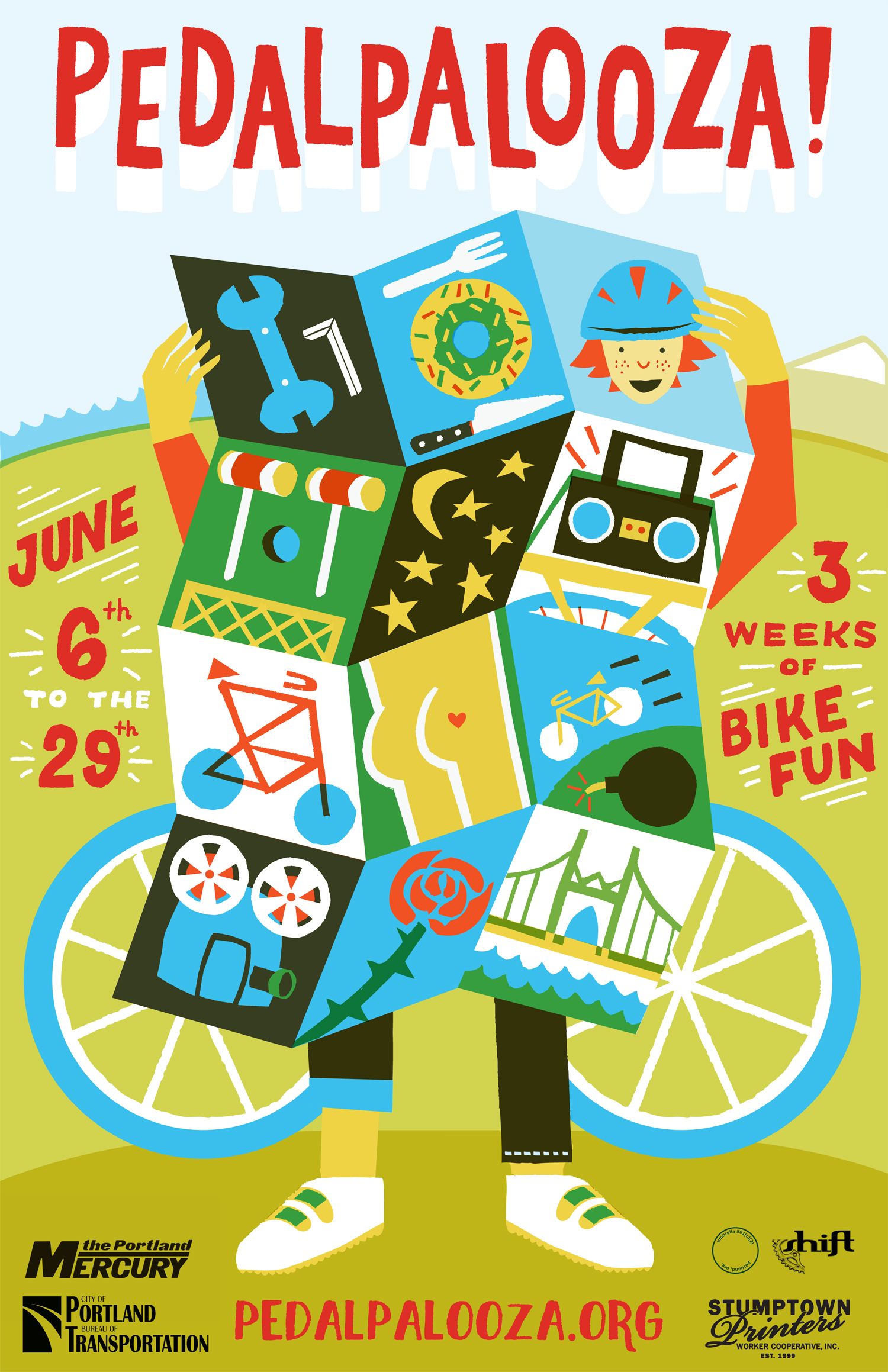 Get your bike tuned and stock up on sleep and frozen pizzas because Pedalpalooza begins now. Come dressed in your finest, get spruced up, shine your shoes, get a haircut, wear something shiny, get a new dress, end your fast, wear some balloons and decorate your bike. Be loud. This is your time to parade around and get ready for 3+ weeks of having too much fun. Join us at the park at 6. Ride at 7. Route will be 2-3 miles and will end at the official Pedalpalooza Kickoff Party sponsored by The Portland Mercury. The Taco Pedaler will be there too, so have dollars for tacos.
