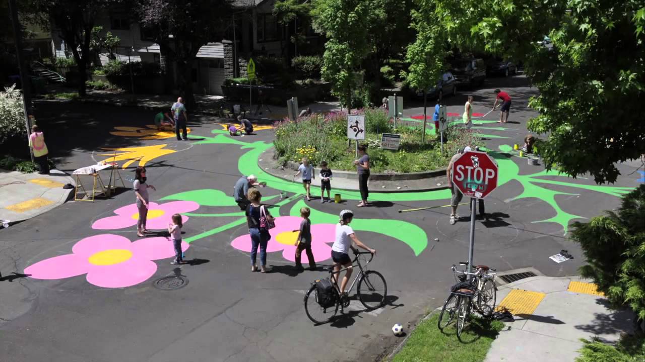 The traffic circle at SE 16th and Ash is a well-trafficked bike route and just a block from the arts-magnet school, Buckman Elementary. We will be giving it some pollinator love! Come on out and help us put a fresh face on this part of Portland. You can a previous years time lapse movie of our intersection painting on Youtube - search for 16th and Ash street painting - it captures the magic. This year will be doing some filming with a serious hex-drone from above for some added fun. We will have kids activities, seats in the shade for a little R&R and some snacks on hand.