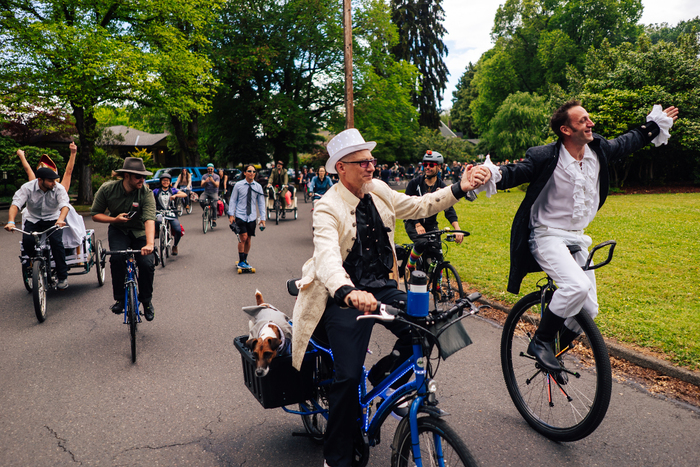 Are you ready for a full month of bike fun? Tune up your bike, cancel your Netflix for June, stock your freezer full of quick meals, and consider getting a subscription service for coffee or energy beverage of choice. Pedalpalooza is NOW. Come join the fun along with about a thousand of your friends as we take our bikes to the streets and show Portland (and the world) what bike fun means. Bring yourself and your bike to The Fields Park at 3, volunteers will be selling Pedalpalooza merch. We depart at 4 PM for a five mile, family-friendly cruise. Don't forget to dress yourself and your bike up.