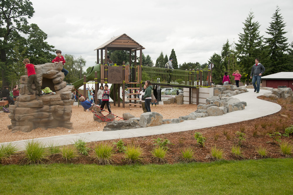 At the playground, enter the park just north of NE 9th Ave and NE Siskiyou St