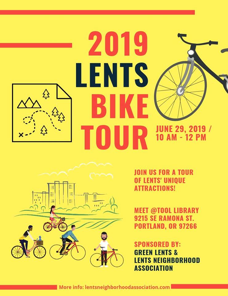 The Lents Neighborhood Association and Green Lents are partnering to lead another bike ride around the Lents' Green Ring. 10am-12pm It's about a 5 mile loop, and we will begin and end at the Green Lents Community Tool Library. This event is free and open to all! Come join us for a fun ride to check out all the unique awesomeness Lents has to offer.