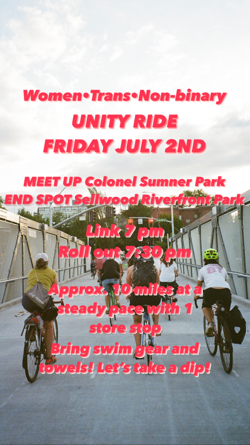Join Marley Blonsky & Kailey Kornhauser, fat cyclists and body positivity activists for a social bike ride! This will be an inclusive, no-drop ride. We've worked with Portlander Madi Carlson to design a fun route that starts at Colonel Summers Park and ends at Vagabond Brewing. https://ridewithgps.com/routes/36965516