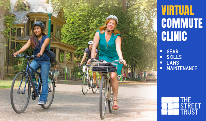 Grab your lunch, pull up a chair, and spend an hour on this first day of Pedalpalooza and Move More Challenge learning the ins and outs of using your bike for transportation! The Street Trust's one-hour clinic covers laws, skills, basic gear, and basic maintenance. This is a great introductory class for people who are new to bicycling or interested in learning more about how to enjoy safe and comfortable bike commuting in all seasons. Experienced commuters are encouraged to come and share their tips with fellow riders and hopefully walk away with new knowledge as well. Topics covered at the include: * Basics of riding – laws, traffic signals and signs, how to handle bike lanes, bike boxes, tracks, and sidewalks * Skills – hand signals, turning, sharing the lane, and changing lanes * Choosing gear – bikes, helmets, lights, locks, accessories, cold and rain gear, carrying kids and cargo * Route planning – resources and taking bicycles on transit * E-bikes & Scooters – interacting safely with all road users * Q&A – answers to questions from new or experienced riders Does this time not work for you? Gather a group of 10 and request a Commute Clinic for your workplace, neighborhood association, organization, or school today! movemore@thestreettrust.org