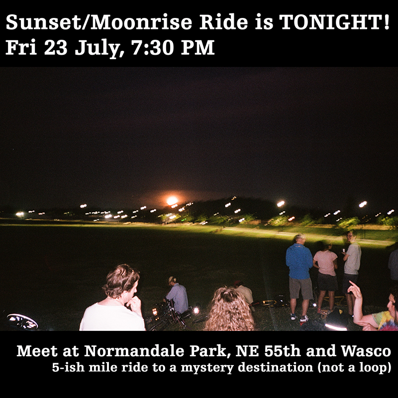 We’re going to get so loopy like you don’t even know. This will be a fairly easy paced ride looping around SE, NE, SW, and maybe beyond with store/park stops. There will be lots of loops of various sizes throughout the ride. Bring your lights for sure and music if you’ve got it.