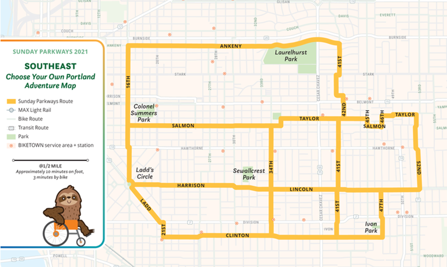 Meet at Adaptive BIKETOWN/Kerr Bikes next to OMSI for a relaxed ride on off-street paths along the Willamette River. Bring your own adaptive bike or rent one in advance by visiting adaptivebiketown.com. Rentals are free for this group ride. Bring ID and credit or debit card to rent - the card will not be charged but is required for liability purposes. Ride details: 11:00 AM - 12:00 PM Arrive, mingle with folks and get fitted for your bike if renting from Adaptive BIKETOWN 12:00 PM - 12:15 PM Brief intro to Adaptive BIKETOWN / stop by Sunday Parkways Sticker Hunt location at Tilikum Plaza / snap a quick group photo! 12:15 PM - 1:15 PM Group ride (approx. 6 miles, mostly flat and on biking paths) and return to Adaptive BIKETOWN Note: Restrooms are available in the OMSI food court just south of Adaptive BIKETOWN/Kerr Bikes.