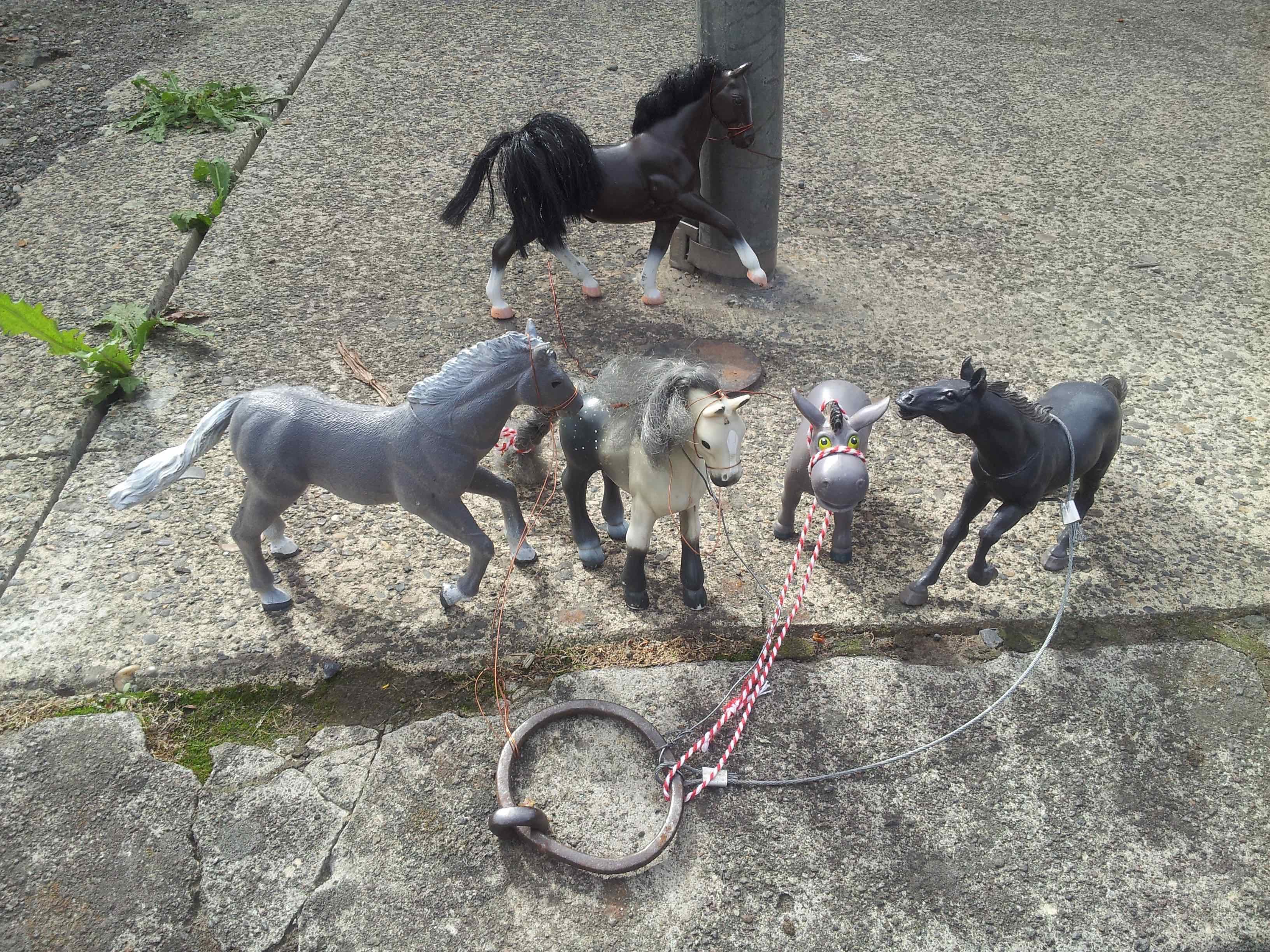 Let's attach tiny horses to horse rings! I'm not an expert at tiny horses in the slightest, but on this ride I would like to attach a bunch of tiny horses to Portland's horse rings. Ride gathers at 3pm at the SW Salmon ST Fountain near the west end of the Hawthorne Bridge, and leaves at 3:30. We will return to the fountain by 7pm. This is a no drop ride. Obviously if you have to leave that's fine, but we will make additional stops if someone gets a flat tire, etc. If you do leave early please try to tell someone that you're leaving so we don't wonder if we lost someone. If you have tiny horses or other animals toys you want to attach or you have supplies to attach them, like pliers, wires, cables, and crimps please bring them. I'll bring a few horses and some metal coat hangers and pliers for attaching, but may not have enough for every rider. Feel free to also dress up yourself or you bike as a horse or even a unicorn for extra fun! Wear a mask please! Please do not ride a horse! This is a Vegan Bike Club ride (please do your best to consume only vegan snacks while on the ride)