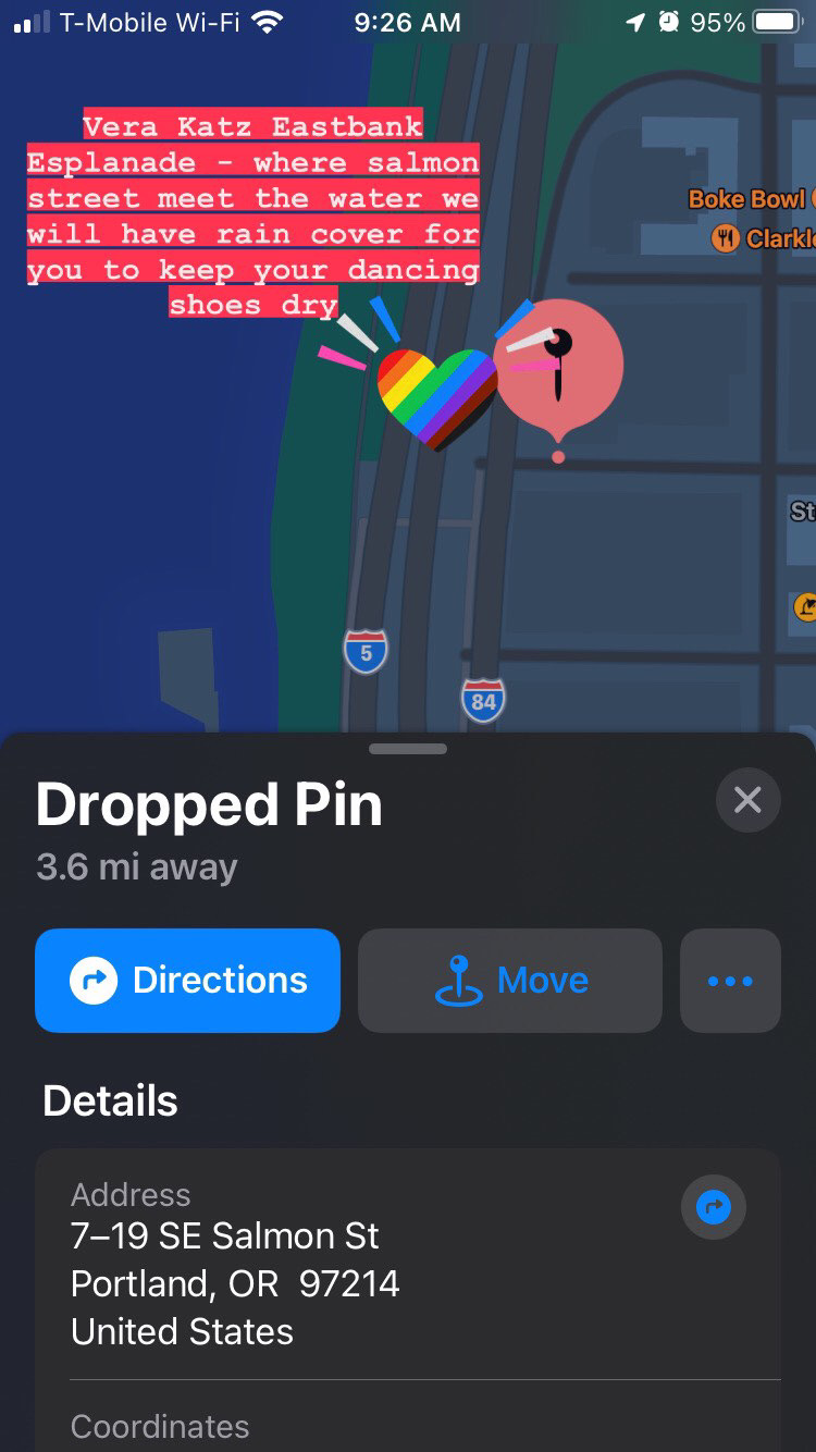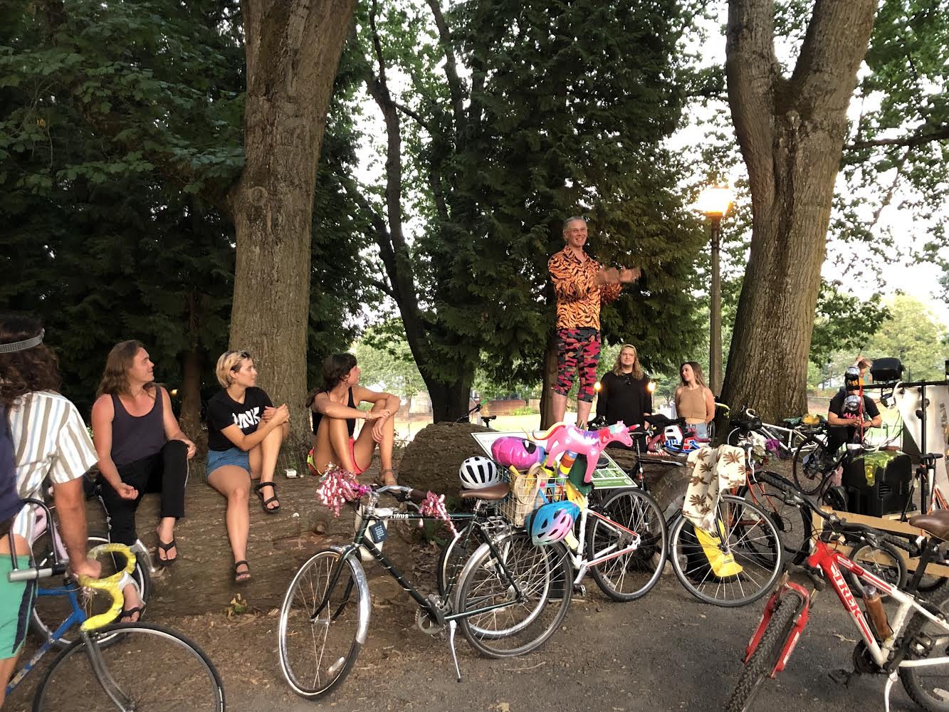 UPDATE: DJ Lo Providing the tunes at the ‘end’ spot till 11pm then we ride back to Irving. Ride merges welcomed. You’re invited to dance and be in our exuberance as we celebrate the festival and the times and adventures we’ve shared. NakedHearts:PDX a will continue to lead rides year round as do Foster Night rides, Westside Wednesdays, Thursday Night Rides, Friday night ride at Ladds and Twosday Road Rascals. This is going to be our big Hell Yeah our Summer was amazing ride. Music will be a selection of all the great music we’ve shared on our 10 or so dance parties, We’re happy to merge with other rides for tonight’s celebration. We will have a few dance stops on the way to the water.UPDATE: End spot is Irving park but we will be at the dance spot till 11pm then rode back. Route will be a loop. We’re heading to the water for a swim stop.