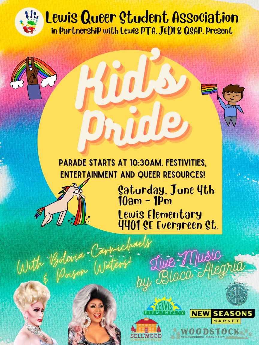 Come along on a bicycle parade commemorating Pride Month and World Bicycle Day brought to you by Downtown Portland and The Street Trust! This fun community event is hosted by celebrated Portland drag queen Poison Waters! Join us in Shemanski Park at 3:00 p.m. on World Bicycle Day, June 3rd. This family-friendly event is for everyone! We’ll enjoy a stately (i.e. slow) parade of two fabulous miles that will take us past spots from Portland’s rich 2SLGBTQIA+ history. The parade will end with a dance party at the Cart Blocks Food Cart Pod @ Ankeny West featuring some surprise guests. Special thanks to ride ambassadors from BikePOC PNW! BikePOC PNW actively creates space for BIPOC folks to ride bikes, build community, forge life-long friendships, and challenge the status quo. Need a bike? There are BIKETOWN stations a block in either direction–in front of the Portland Art Museum and at Director Park. ROUTE DETAILS Our two-mile route will feature mini dance party stops in three street plazas and take us by points of interest from Portland’s 2SLGBTQIA+ past and present, like the office and residence of famed 1900’s lesbian Doc Marie Equi; Vera Katz Park, former mayor and gay ally; and Pride Plaza, one of our new street plazas filled with street art, public seating, and community activities. About The Street Trust The Street Trust logoThe Street Trust is a membership advocacy organization representing street users from across Greater Portland. We advocate to break the political gridlock to address unsafe and incomplete public streets that threaten lives and livelihoods, and to win policy and investments that save lives, reduce barriers, and expand opportunities to the people and neighborhoods our current system neglects. We envision a complete, safe, low-carbon, multimodal transportation system that contributes to equity in access, opportunity, health, and prosperity for people and communities across the Portland Metro Region and beyond. Visit TheStreetTrust.org for more information. About the Downtown Marketing Initiative The Downtown Marketing Initiative is a program of the Portland Business Alliance, Greater Portland’s Chamber of Commerce, that promotes Downtown Portland to the greater Portland metro region. Marketing programs include holiday promotional efforts, robust social media messaging, events and programming, seasonal cooperative retail and restaurant promotions, and public relations campaigns to promote Downtown businesses. Downtown businesses may participate in the program at no charge. Visit DowntownPortland.org for more information.