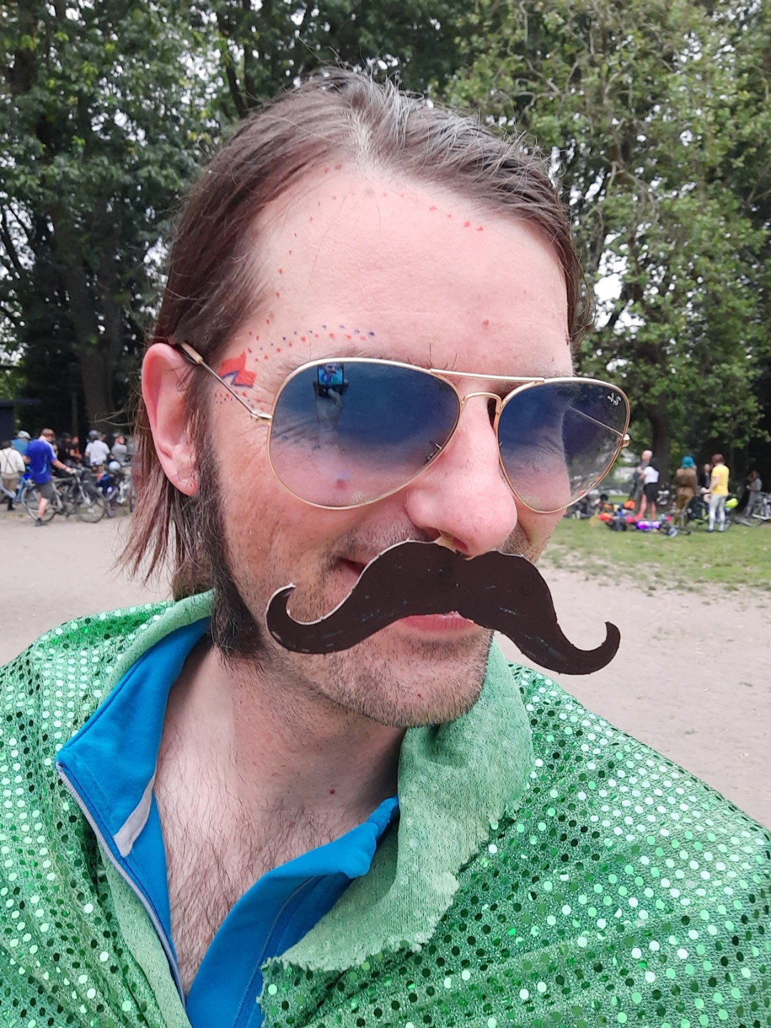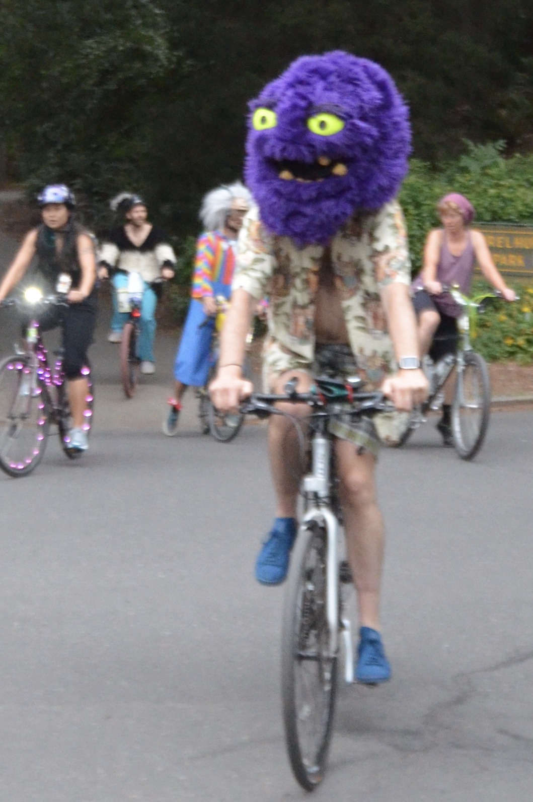 Tonight’s theme is popping neon colours and blacklight eye bending lights along with the best selection of Electro-Swing. Costumes of Blacklight paints and clothing and tapes and white clothing. The vibe will be social and the route will be a treat. Kelli will be leading the ride. She is a pillar in our community and is the person I (Moorland/NakedHearts:PDX) seek advice from and whose example I try to follow. I’m super happy she’s leading our group tonight.