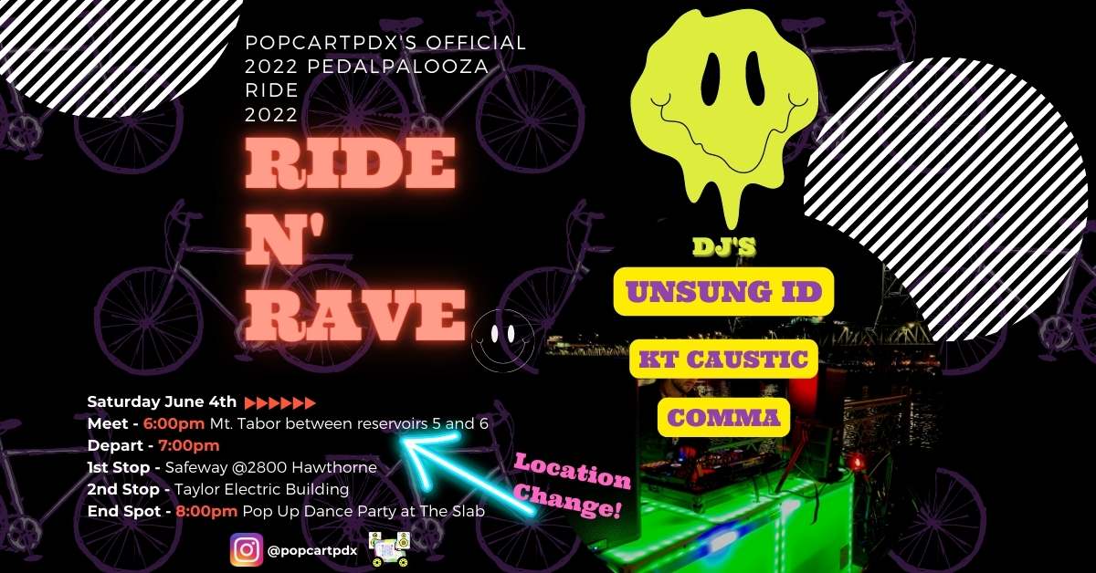 UPDaAte we’re following DJ Carlos…Join the Wednesday night dance party ride where the Pedalpalooza kick off ride ends before the other ride heads out to Beaverton. We will swing by numerous dance spots in Portland, to get our groove down and up celebrating the first day of Pedalpalooza. Some funky funk, Lizzo, classic dance tracks and there might be the odd Katie Perry song…coz baby you’re a firework. If there’s a upbeat track you really want to hear come speak to me (Moorland) and I’ll try to include it. Plenty of refreshment stops as we head to the final destination. Slow pace. Corkers appreciated.