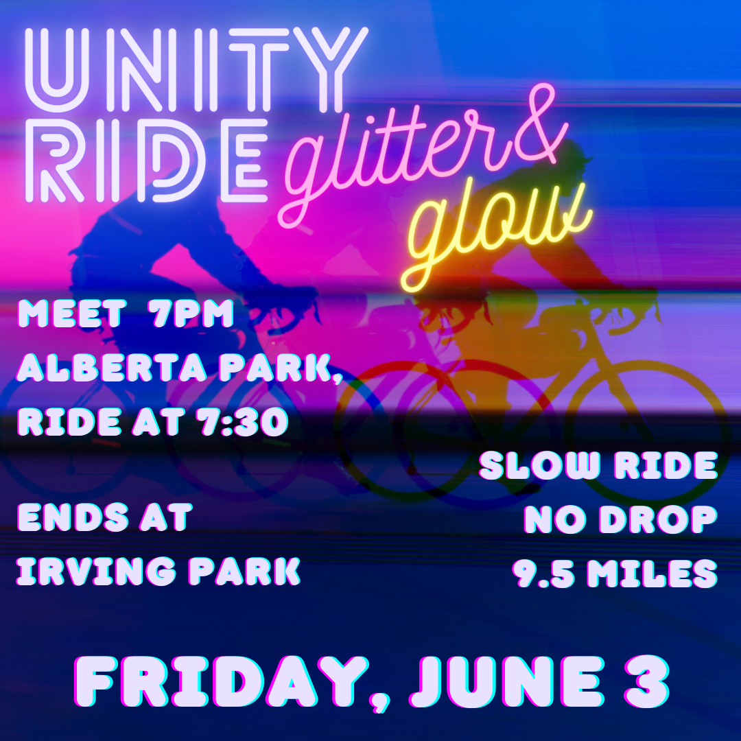 A ride centering trans, non-binary, women, gender curious, and gender expansive individuals. Join us this Friday, June 3rd for an 9.5-mile ride around Northeast Portland! We'll start (and get our glitter on) at Alberta Park, ride east, cruise down the hill by Rose City golf course, head back west, then glow up to Irving Park. We'll also stop for snacks near the end of the ride. The ride will be about 9.5 miles long. We'll go at a chill pace, around 10 miles per hour. This is a no-drop ride—we don't leave anyone behind—and all bikes are welcome.
