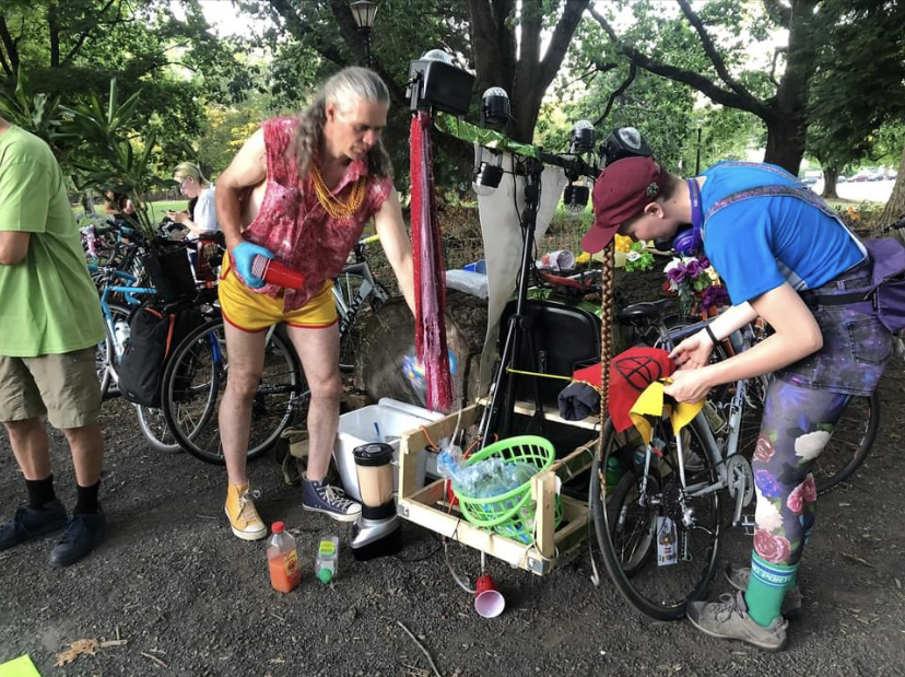 Update: We’re definitely leaving for 7:30. A ride freind and Pedlapalozza stalwart said she thought, after the frozen Margarita ride where we powered a blender, that a waffle ride would be fun. So we are going to probably ride merge with another ride or two and gather for fresh made waffles. Bring an appetite, maybe your own mixture, and we will make fresh waffles at the start and the end of the ride. Music will be delicious food themed tunes and relaxed late summer vibes. The power system I use for my lights and speaker can easily power a waffle maker or two so….yeah fresh waffles. Bring your refreshments and be prepared for an end picnic and chill. More details to come. All are our rides are safe spaces please help foster this atmosphere of acceptance and mutual regard. A freind suggested I ask for help in this and the reality is it’s too costly for me alone to bear. Accepting donations so I can buy a new SoundBoks3/JBL 710 speaker so I’m more enabled for our rides (they happen all year) and in supporting others community actions. The current Pyle speaker is beginning to struggle and and I don’t personally have a $1000 to get a new high end speaker. Cash or Venmo @Moorland-Moss