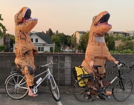 Were you at Pioneer Courthouse Square on Friday June 24, 2022 in an InflatableT-Rex costume setting a world record? https://www.instagram.com/p/CfRwcZcJdcg/ Still have your costume & notice how forlorn it is just sitting there? need to buy one? https://www.ebay.com/itm/233507459319? BUY YOUR COSTUME NOW! Have you ever wondered if it is possible to ride a bicycle in an inflatable costume? I have. And then I googled it. Much to my surprise, there are some people out there that have already ridden a bike in their inflatable T-Rex costume... https://www.youtube.com/watch?v=YOumG6HS-rY So, are you gonna live the rest of this summer without showing people how truly awesome, fun, and perhaps foolish, you are? Right!! I didn't think so. Have you still not ridden across the Blumenauer Bridge?? If you have, now you can do it in costume ! if you know chris guillebeau, would you please let him know he inspired me ! Need a costume? I bought my inflatable costume on Ebay for $44 bucks from someone in San Francisco, so it got to PDX in just 3 days so you have time to order yours! maybe get yours on ebay or some other online place. T-Rex preferred but any inflatable will be super fun, there are so many to choose from !! search online for "inflatable costume" and be amazed ! Please RSVP to the gmail so I can edit this event with numbers and plan the route. Please also email if you have questions. Definitely want to ride across Blumenauer Bridge - twice ! Bring Your Own tape if you fear your rear wheel will eat your tail. ride at your own risk! but we will be riding at Parade Pace!