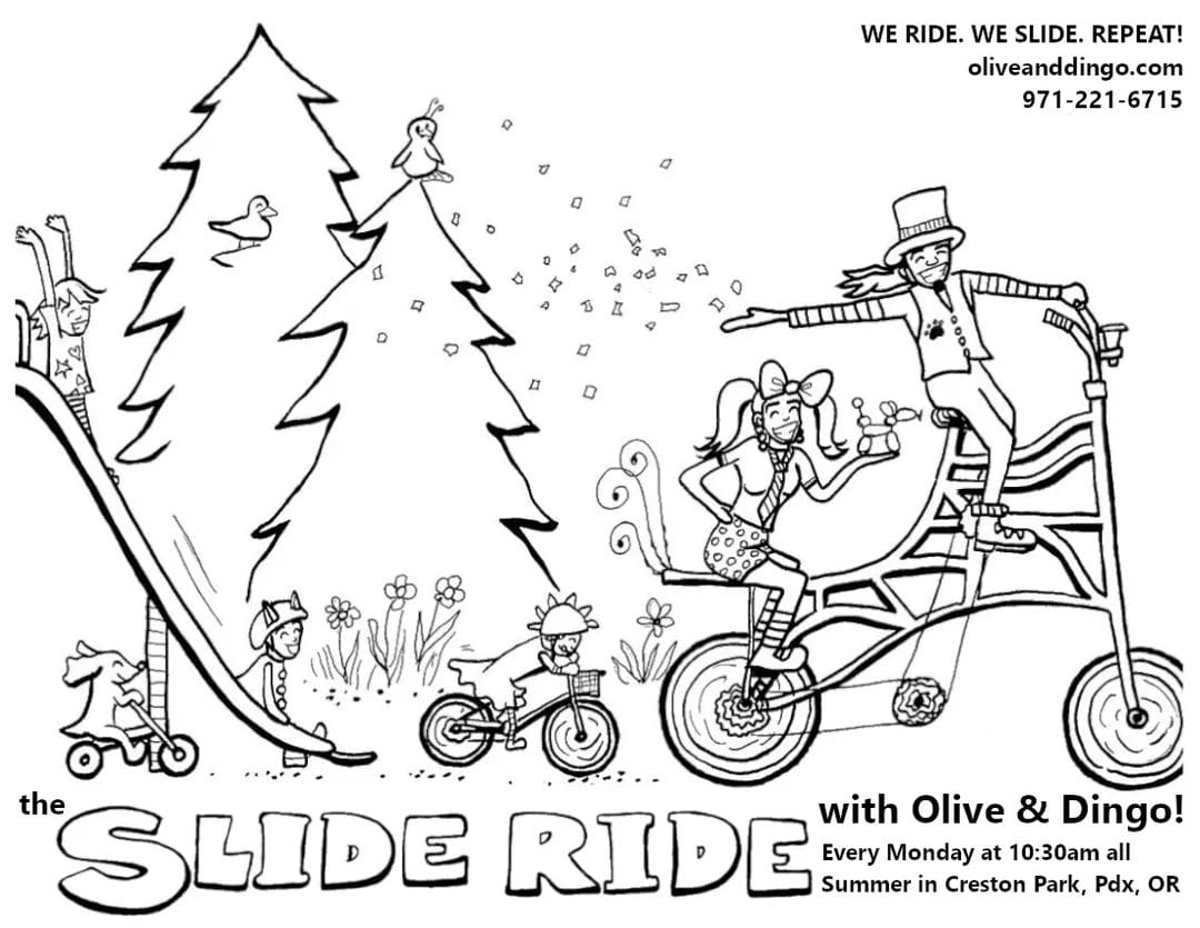 Sometimes all our kids need is a lil push to take off on their bikes. This event is everything that's great about riding bikes and is for very young riders! Fun with friends/peers, encouragement and riding tips with fun clownie people who ride bikes all the time, a safe riding space away from traffic, taking breaks to play on the playground and building confidence in ourselves, in our beautiful urban park surrounded by trees! So here's what we do: We meet at the playground to group up. You'll find Olive in a giant bow and Dingo in a tophat--each with tall bicycles. Grown-ups, please plan to supervise your kiddos as they ride depending on your child's riding skill level. You could easily stand in the center grassy area and watch them ride the loop. Bring, helmets, water, and a snack, yes! We'll make sure our bikes are ready for action, sing a song, and then we ride the quarter mile loop. It's paved and away from cars but it can be a tad bumpy. We ride the loop a couple times with playground breaks in between. All the things we can do to practice good bike skills, we do! We ride, we slide, we encourage our friends, we repeat! We stay at Creston for the whole ride! There is a "secret park" on the same property that we end the ride. Woo! Event is FREE but at the end donations are totally accepted for balloons and popsicles and Olive and Dingo's good work but not required. Keep being awesome and so will we!