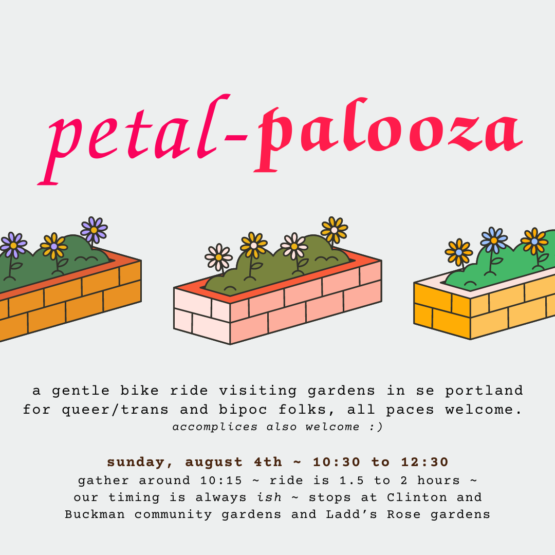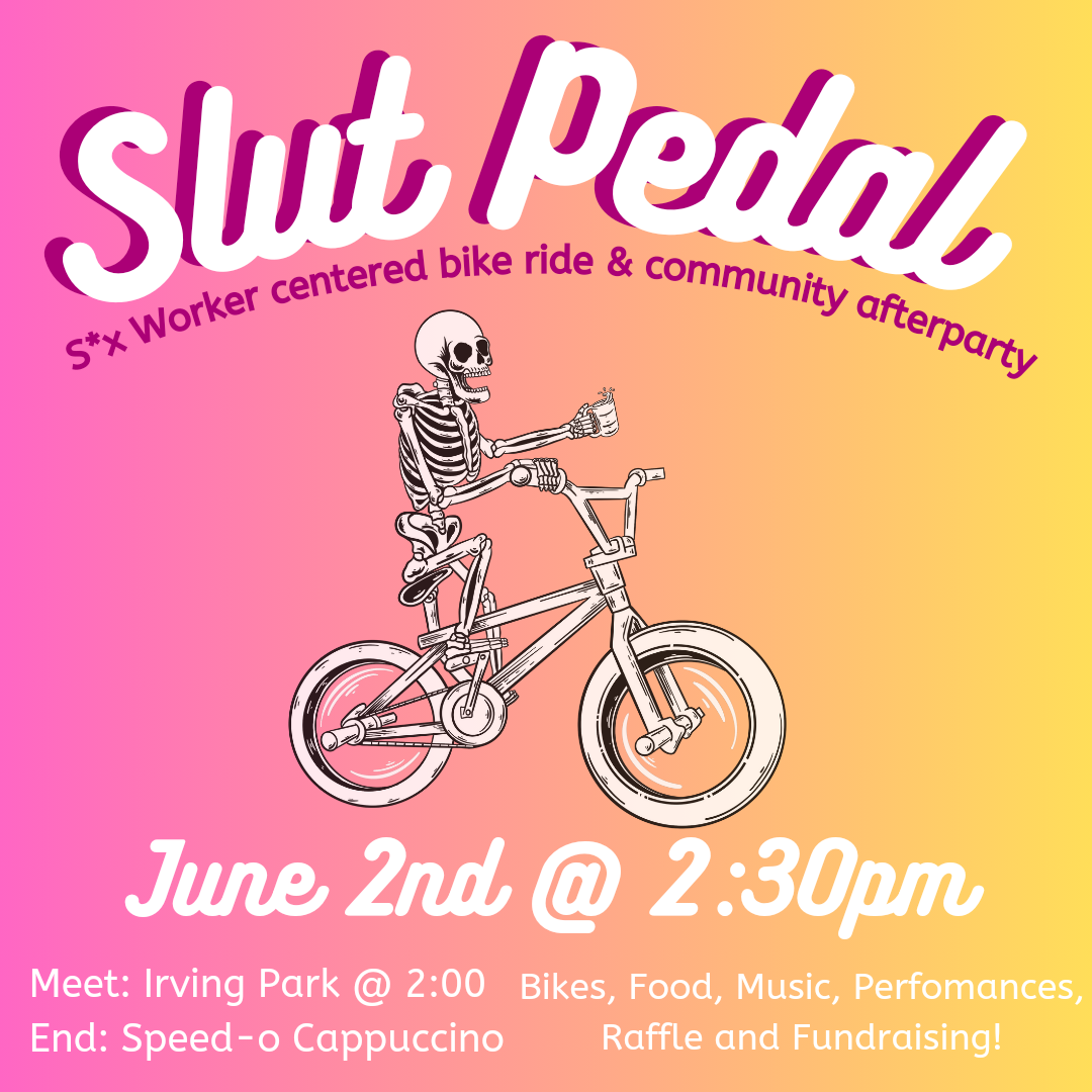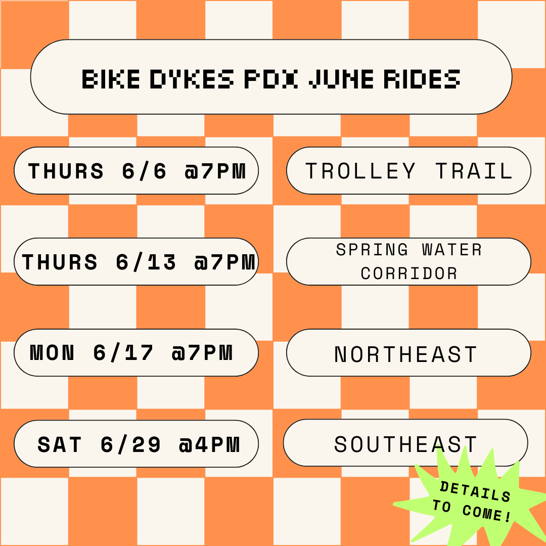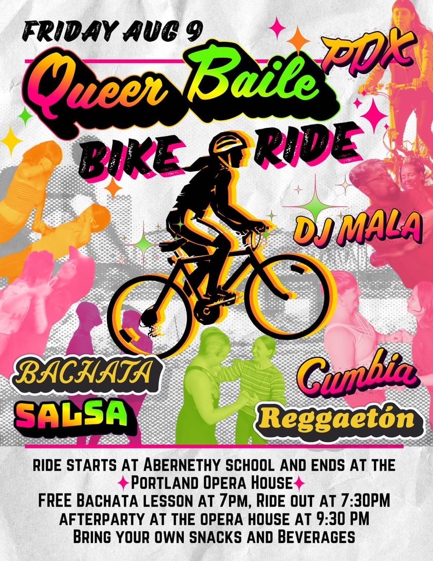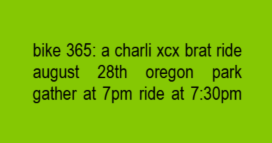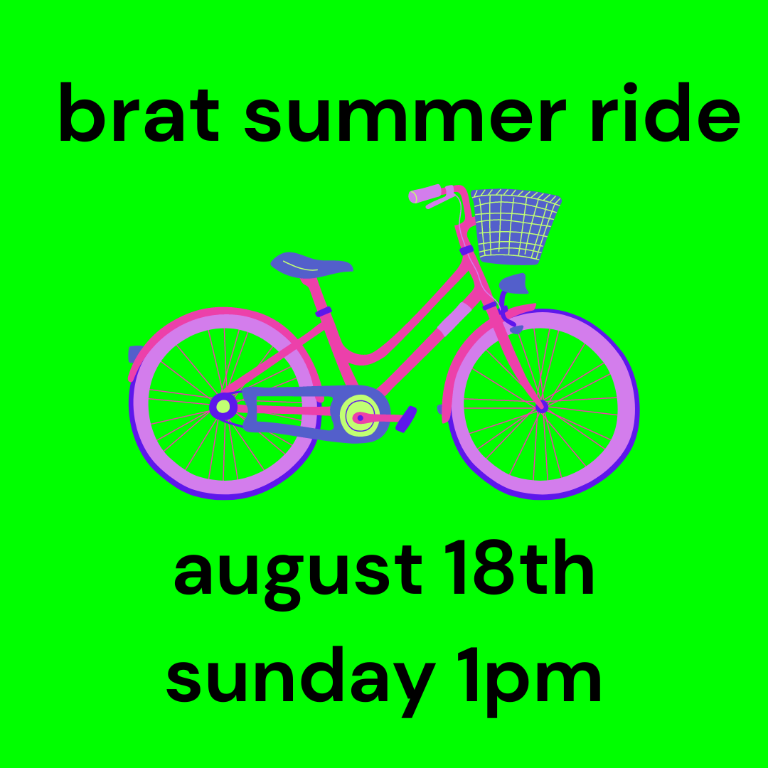 COME SEND IT Techno, House Tech, DnB, Hard Tech, some Psy??? This time stepping away from the classic Berlin hard style and finding influences from all over the World. Expect fast electrifying music. This is my (Bianca) favorite ride, so if you come dance with me ya'll make me the happiest. Come roll with us for the last Saturday of pedalpalooza to get all that energy out. Store stop, plenty of dance stops, short ride. As with all our rides, we practice consent and non-violence. Listen and empower ‘no’. If you have concerns please talk to the ride leader. We practice non-violence around car interactions, please be calm, respectful, friendly when corking or let someone else do it. Our default is to ask cars to stop, not make them.