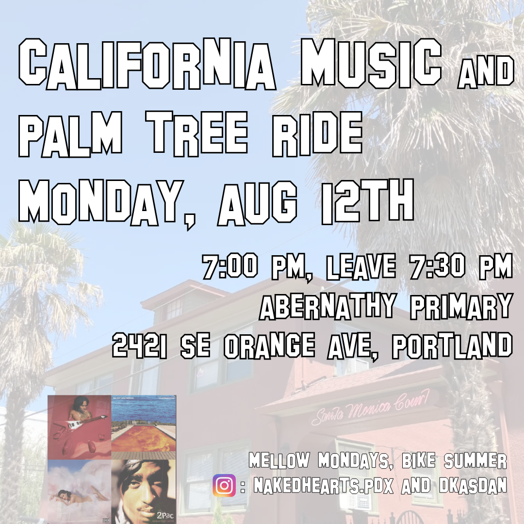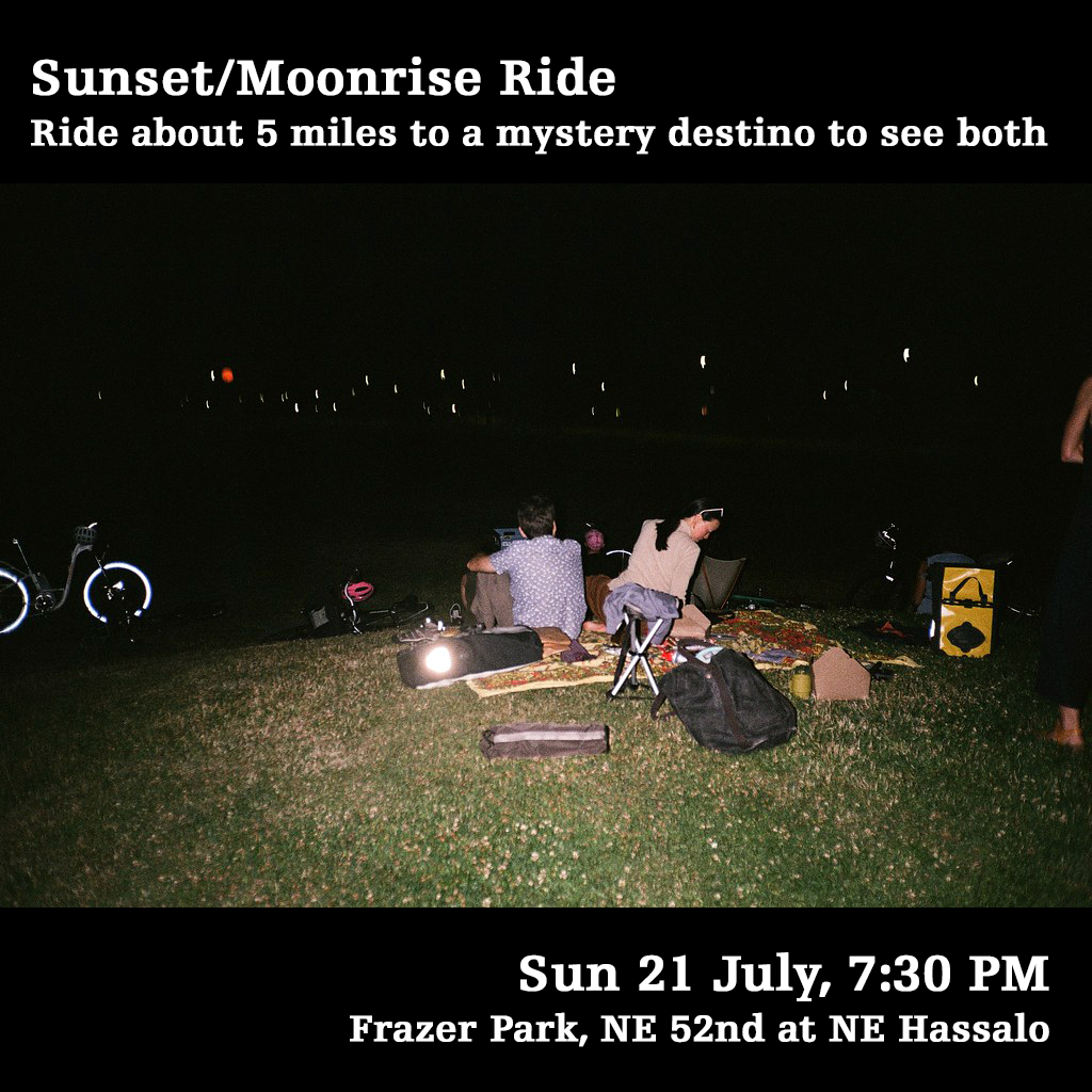 Perhaps the most joyous and the shortest of all rides, the Ding Ding Ride (usually led by the inimitable Armando Luna) celebrates bikes and their bells. Join fellow bike riders with a night cap and hat tip to Bike Summer/Pedalpalooza 2024 with three minutes of joy and bike bell ringing around Ladd Circle. (NOTE: Armando will not be available to lead and has given his blessing for me to lead the ride in his absence.) The ride is simple: Come to Ladd Circle in Southeast Portland, ride around three minutes while ringing your bell and then leave. The ride will begin promptly at 11:57 pm and end promptly at 12:00 am. This ride is a peaceful celebration of bike love. Please be kind to neighbors who may be resting, sleeping or getting ready for sleep. Please no loud music or noises…JUST acoustic BIKE BELLS! I want to also recognize that this expression of joy, love and fun is done on land that has been stolen from Native Peoples of this region through genocide, and that to this very day people around the world are suffering greatly under the same conditions because of the military-industrial complex of which cars and car infrastructure are products. So let us express our protest and love at once…And for three minutes. Free Palestine! And all oppressed Peoples of the world.