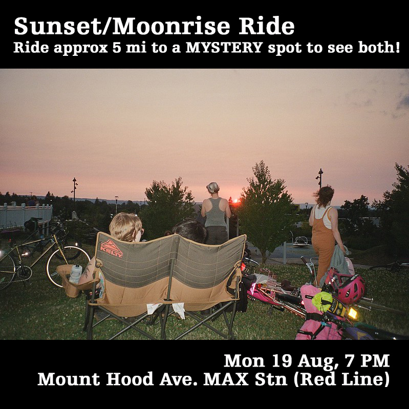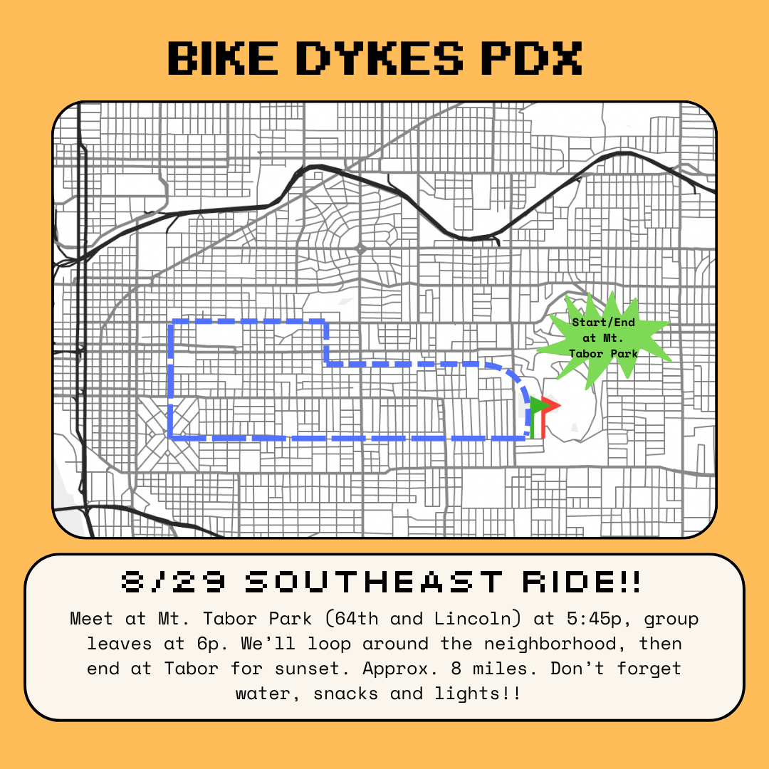 There have been so many great rides this summer. The Cone Ride. Portland Music Ride. Dress Like Your Bike. Solstice Ride/Skate. SharkNaito. And that's just the rides we've hosted! This ride is to celebrate the summer that was. Come dressed in an outfit inspired by your favorite ride from this summer! Or, just show up and have fun with your friends and community. This is *not* a naked ride. If you liked those rides, we invite you to get creative, but please make sure the private bits are covered appropriately. Meet at Peninsula Part by the gazebo starting at 6:30. Ride at 7ish. Route TBD, but we're aiming for about 10-11 miles. Ride will be a loop. ------------ Ride Safe PDX is a queer-led group that's working to build an inviting, inclusive, and welcoming bike community. We practice consent and follow the Shift2Bikes Code of Conduct. All wheels welcome, including e-bikes and skates. Find us on Instagram @RideSafePDX.