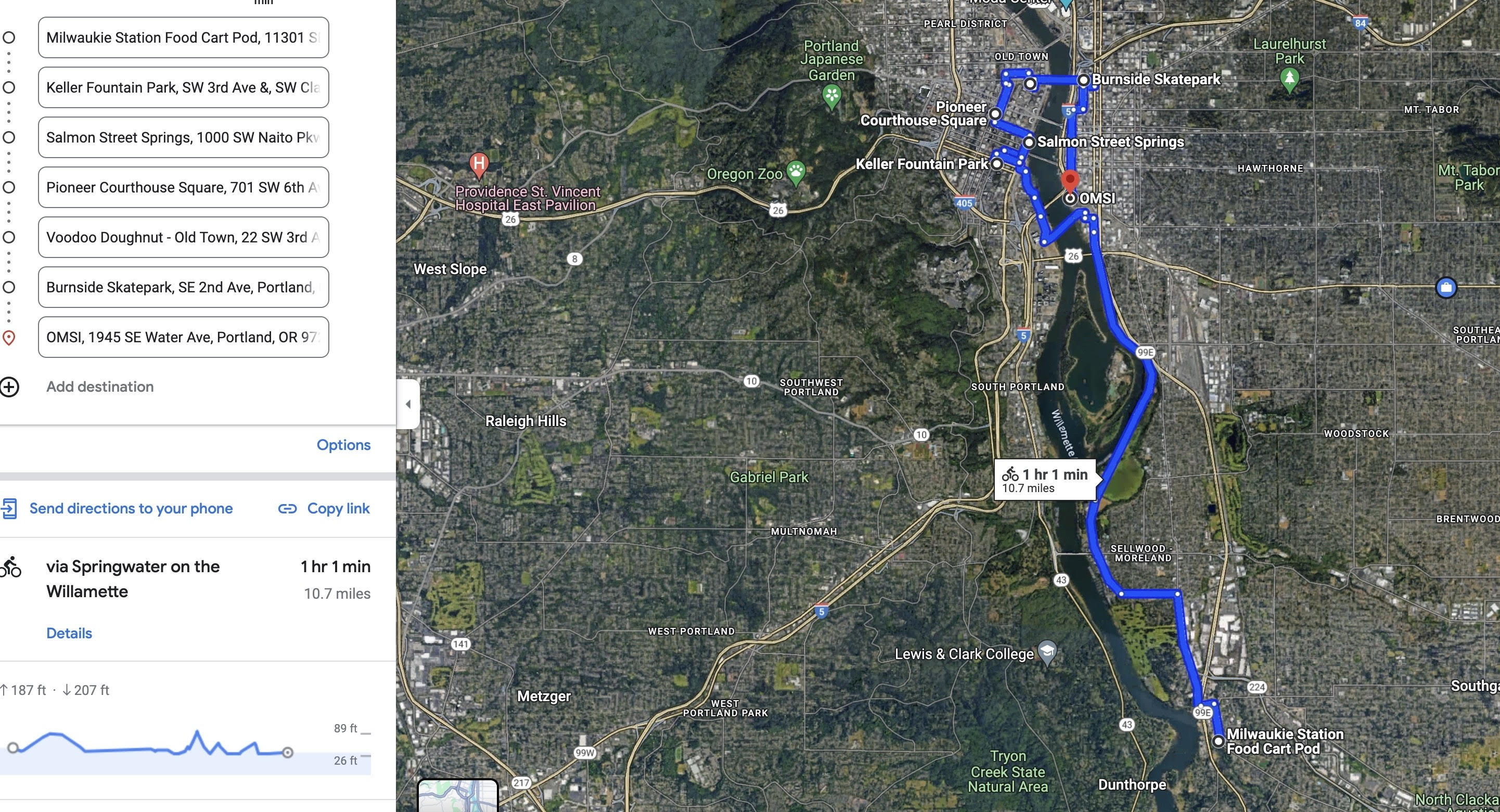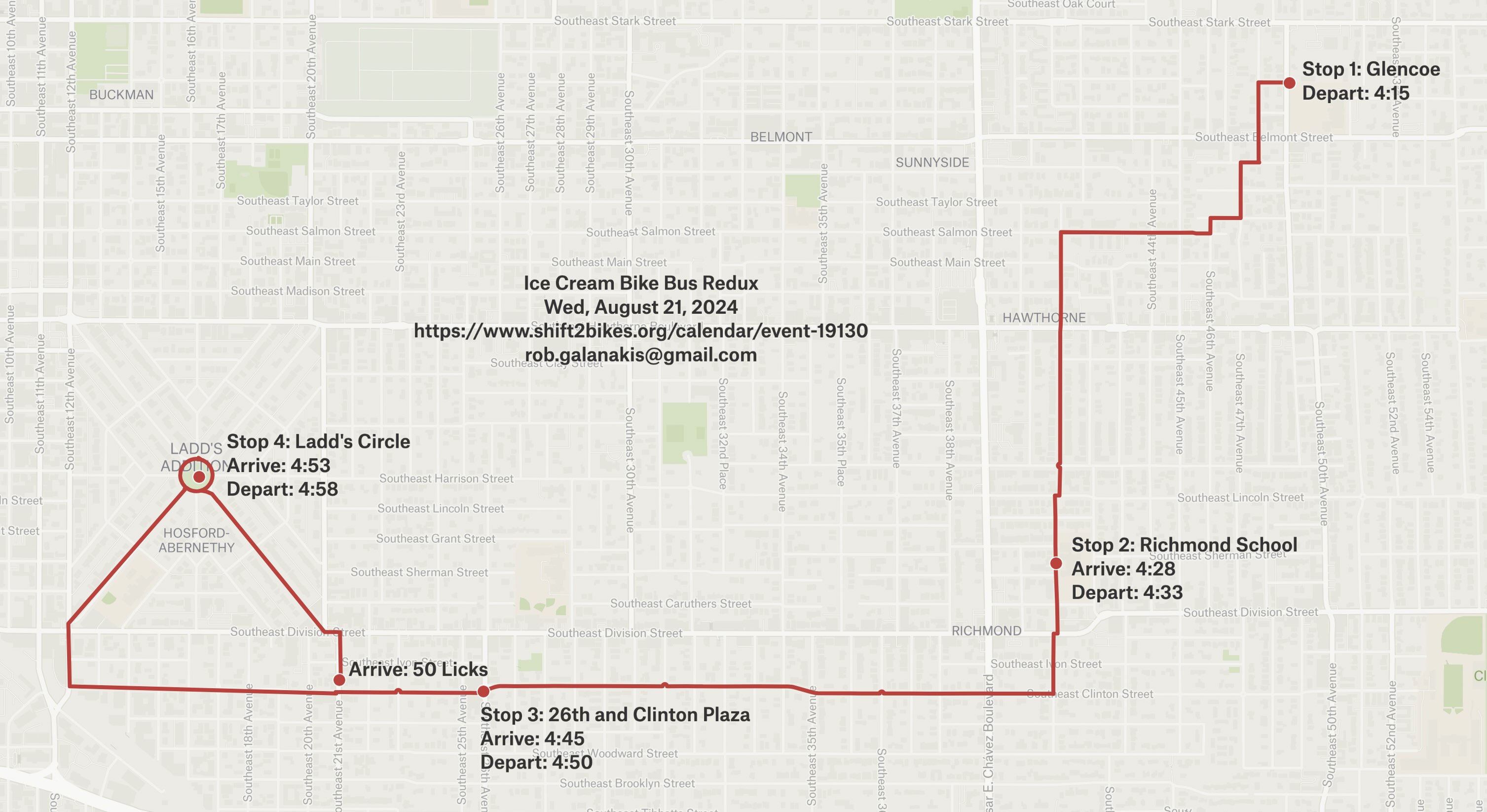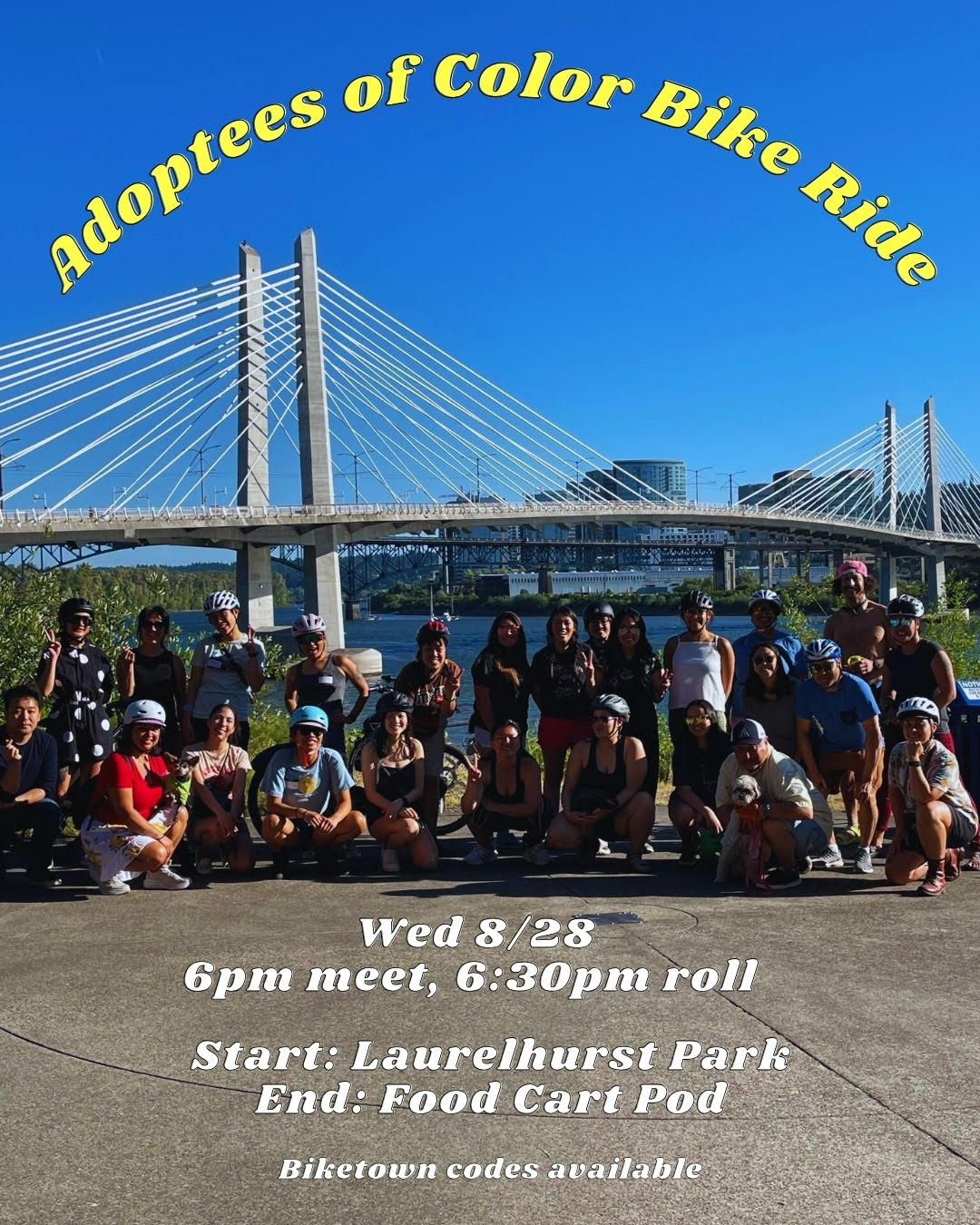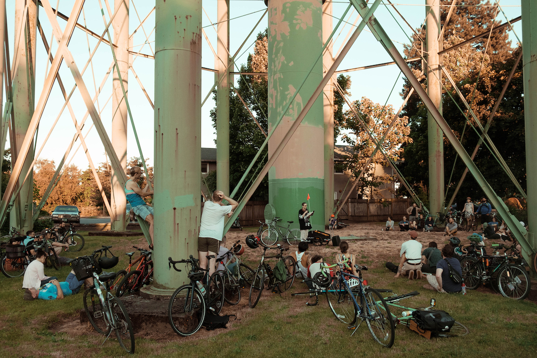 Three meeting points: 1. SE Clinton St/41st Ave at 10 am; 2. SE Clinton St/26 Ave at 10:10 am; 3. Tilikum Bridge at PDX Opera ~10:30 am; leaving from Tilikum location ~10:35 am