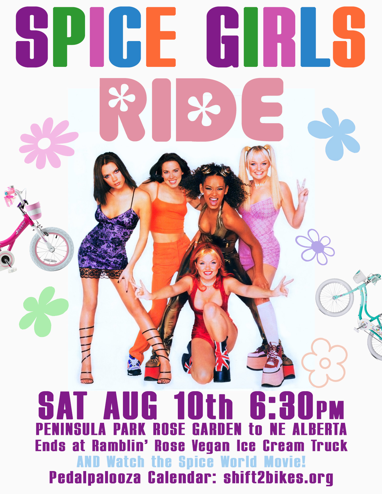 Come join us for the last day of Bike Summer(Pedalpalooza forever!) Let's go out with a bang! Calling ALL bikes , roller skaters, unicycles, trikes, low riders, tall bikes, swing bikes, e-bikes, bikes in costume, riders in costume, or just come in comfortable clothes. Let's have a spectacle through the streets of Portland! Bring your toys...Juggling accoutrements, tightropes, hula hoops, frisbees, glowy thing-a-ma-bobs, bubble machines for a park stop and the end spot. Wear your favorite Bike Summer Ride outfit, wear nothing at all and protest gas use or protest wearing clothes. Disappointed(I know I was) there wasn't a Clueless Ride, Dr. Who Ride, Star Wars vs. Star Trek Ride, Madonna vs. Lady Gaga Ride, Lingerie Ride? Dress the part and join the collective.This will be a safe ride, please only non-gas powered modes of mobility. Out of respect for all riders, flexing/showboating/trick riding will be allowed at the back of the pack only(just not through the group please). Respect and consent will be adhered to, as with the Shift Code of Conduct. If you are banned from other rides, you are banned from this ride. It's gonna be hot/warm that evening, so dress/undress accordingly, and bring hydration. There will be a store stop, fairly level route through SE, NE, and downtown. Corkers most welcomed and encouraged please and thank you. Also need some peeps to be safety monitors amongst the group/ride, if interested, contact Jameson through the email link. Use phone number for merge coordination.