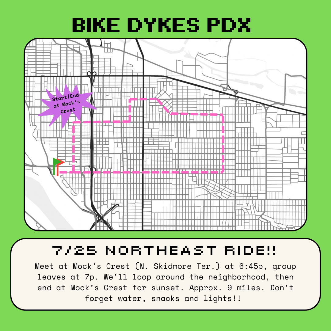 Ever just wanted to blast some boleros with the homies while riding into the sunset? We will finish at Mock's Crest with a picnic and a sunset. Bring some snax to share if you feeling generous <3 Come finish off Pedalpalooza with us <3 QUEER BIPOC LED-RIDE + SAFE SPACE. ALL WHEELS WELCOME. NO-DROP RIDE (no one is left behind). **Please arrive to Nico's ice cream on time so that we have enough time to order, enjoy, and roll out to Mock's Crest by 7p.