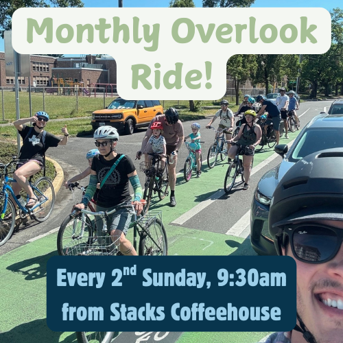 The Overlook monthly rides are free, family-friendly, and offer an opportunity to get outside and meet neighbors in a conversational paced ride that explores the many bike paths, routes, and destinations that Overlook has to offer. Route is always less than 6 miles (about 1 hour of riding) and is a loop. The rides are monthly on the 2nd Sunday of each month. The ride is led by Overlook Neighborhood Association Chair Nic Cota. Feel free to reach out if you have any questions, want to get involved, or have any issues/ideas related to transportation in the Overlook neighborhood!